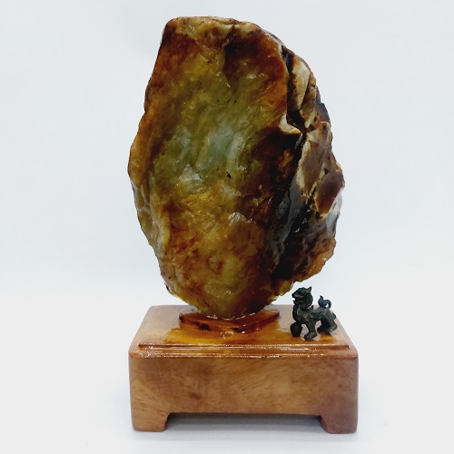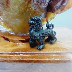 Đặc biệt, decor theo viên đá là một tượng Tỳ hưu bằng đồng. Tỳ Hưu được chế tác tinh xảo, càng làm tổng thể viên đá đẹp hơn.