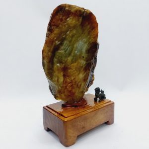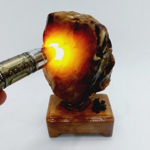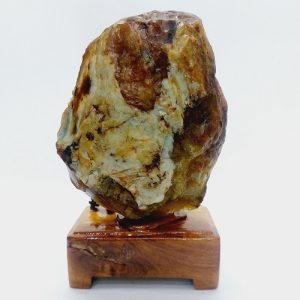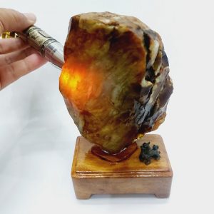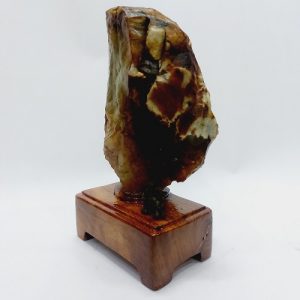 Sản phẩm là một viên đá mã não màu đỏ vàng tự nhiên. Đá có hình dáng tự nhiên, nguyên thủy, không mài cắt hay tác động của con người. Nó được đặt trên một đế gỗ tự nhiên, được gia công tỷ mỹ, không bị mối mọt, ẩm mốc.
