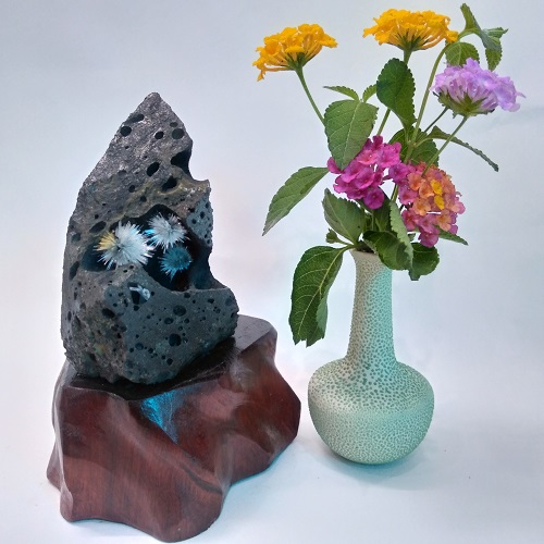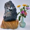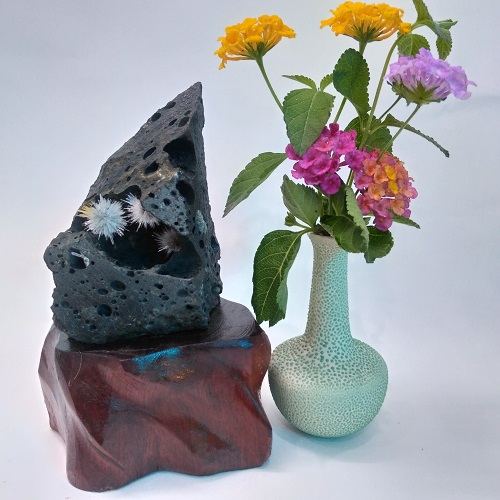 Đá phong thủy hoa ưu đàm Aragonit được đặt trên 1 đế gỗ tự nhiên, được chế tác tinh tế, có lớp phủ PU chống thấm, ẩm mốc, càng làm tăng vẻ đẹp cho viên đá.