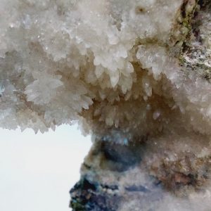 Sản phẩmlà một viên đá, bề mặt phủ bởi một lớp nhũ canxit là những tinh thể nhỏ li ti màu trắng như một rừng hoa. Đá có dáng đẹp như tượng nhân sư Ai Cập.