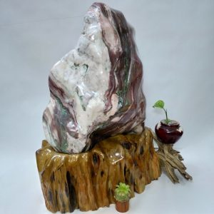 Đá phong thủy Serpentine đa sắc có dáng cao, cân đối, đặt trên một đế gỗ lũa tự nhiên. Đế gỗ được sơn phủ bóng, không mối mọt, ẩm mốc. Sản phẩm màu ngũ sắc nên hợp với tất cả các mệnh.
