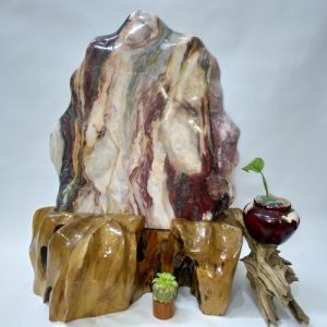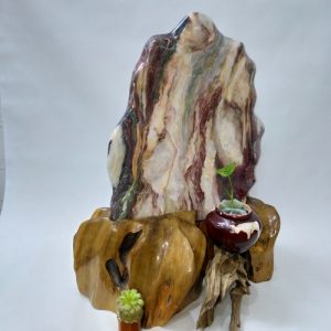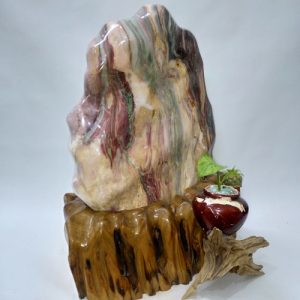 Đá phong thủy Serpentine ngũ sắc có dáng cao, cân đối, đặt trên một đế gỗ lũa tự nhiên. Đế gỗ được sơn phủ bóng, không mối mọt, ẩm mốc. Sản phẩm màu ngũ sắc nên hợp với tất cả các mệnh.