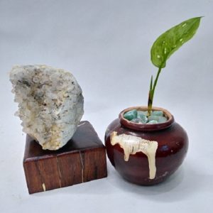 Đá phong thủy thạch anh trắng tinh thể búp là một bụi thạch anh tinh thể trắng tự nhiên hình chóp lục giác. Nó được đặt trên một đế sơn phủ bóng, không bị mối mọt, ẩm mốc.