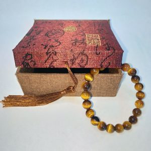 Vòng tay đá mắt hổ vàng VT003. Là sản phẩm đá tự nhiên nguyên khối 100%. Nó có tên gọi là Đá mắt hổ vàng nâu.