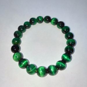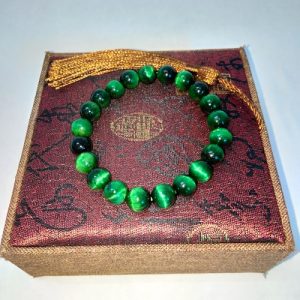 Vòng tay đá mắt hổ xanh VT004 à sản phẩm đá tự nhiên nguyên khối 100%. Nó có tên gọi là Đá mắt hổ xanh lục.
