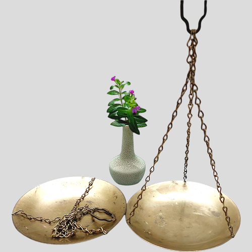 Dĩa cân bằng đồng có thể sử dụng để làm giá treo nến hoặc gắn vào cân treo để cân. Nó được chế tác rất đẹp từ dĩa cho đến dây xích treo.