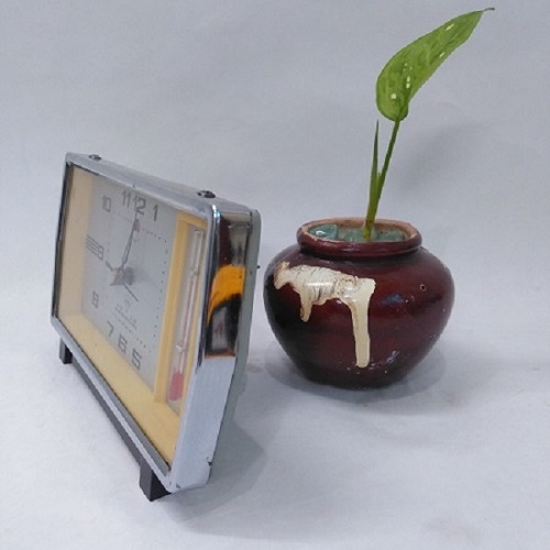 Mặt Đồng hồ để bàn báo thức cơ cót DH003 được tích hợp thêm một nhiệt kế thủy ngân. Ngoài việc xem giờ, ta có thể theo dõi nhiệt độ môi trường xung quanh.