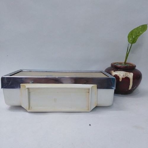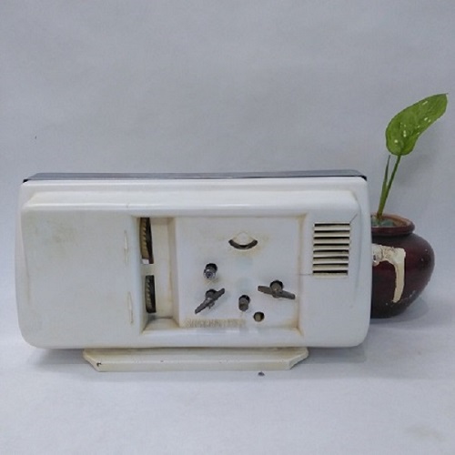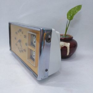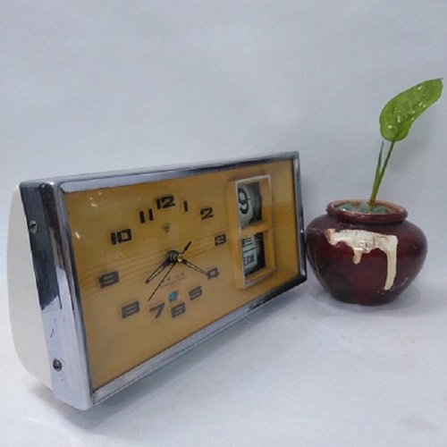 Đồng hồ cơ để bàn DH005. Sản phẩm là một chiếc đồng hồ chữ nhật. Nó có chức năng hẹn giờ báo thức, hoạt động với cơ chế lên dây cót. Vỏ bằng nhựa trắng. Viền xi mạ sáng bóng. Đế bằng nhựa trắng. kính phẳng bằng thủy tinh. Mặt số bằng nhựa. 3 kim bằng kim loại sơn đen, máy bên trong bằng đồng, trục nhưa.