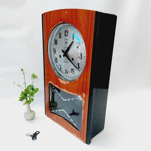 Đồng hồ quả lắc xưa DHQL001. Sản phẩm là một chiếc đồng hồ thùng gỗ quả lắc cơ treo tường. Nó có chức năng xem giờ và báo giờ bằng chuông. Cứ 30 phút là gõ một tiếng chuông, 60 phút thì gõ chuông theo giờ hiện tại, 6h thì gõ 6 tiếng chuông. Nó hoạt động với cơ chế lên dây cót, mỗi lần lên cót thì máy chạy được 15 ngày.