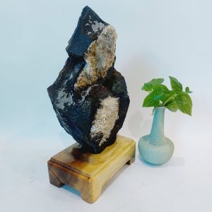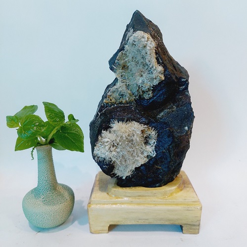 Sản phẩm là một viên đá tự nhiên có dáng một hốc đá. Bên trong có những bông hoa trắng đó chính là những tinh thể Aragonit.