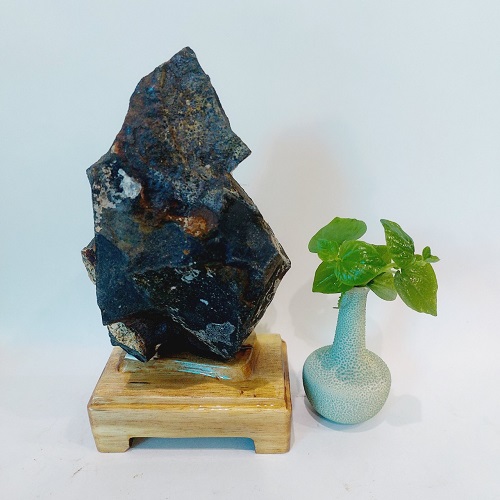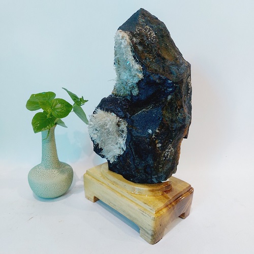 Viên đá được đặt trên 1 đế gỗ tự nhiên, chế tác tinh xảo và nghệ thuật. Đế được lớp phủ PU chống thấm, ẩm mốc, càng làm tăng vẻ đẹp cho viên đá.