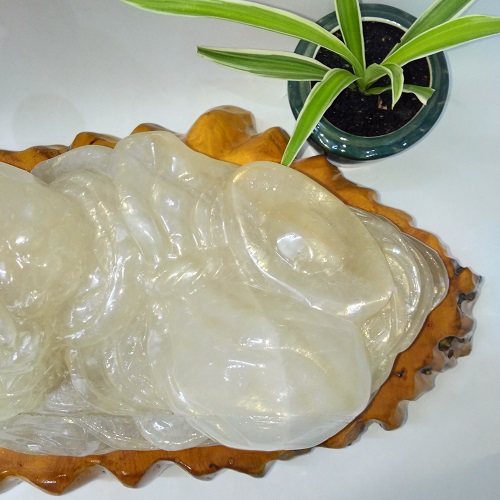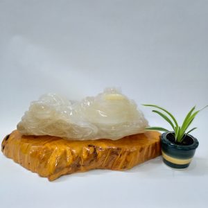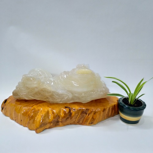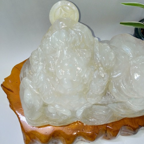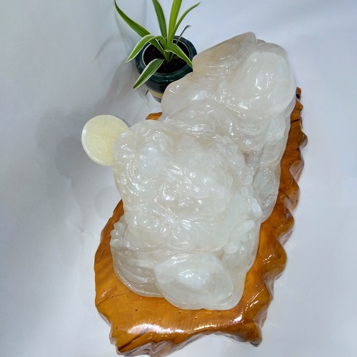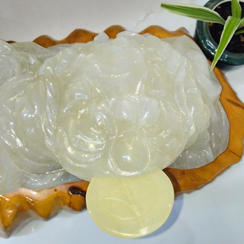 Linh vật phong thủy Thiềm thừ (MS: CBC001). Là sản phẩm đá tự nhiên nguyên khối 100%. Nó có tên gọi là ngọc Canxit, thấu quang 100%.