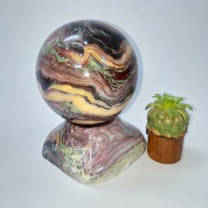 Quả cầu đá phong thủy tự nhiên (MS: QC015) là sản phẩm đá tự nhiên nguyên khối 100%. Nó có tên gọi là đá Serpentine đa sắc.