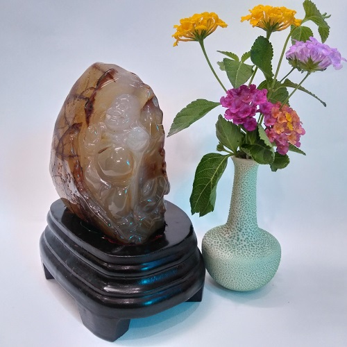 Tượng di lặc đá phong thủy mã não là một viên đá tự nhiên chạm hình Di lặc ngồi cười hoan hỉ.