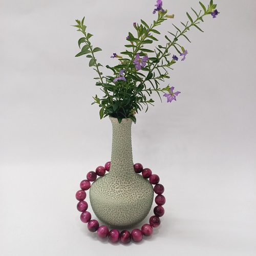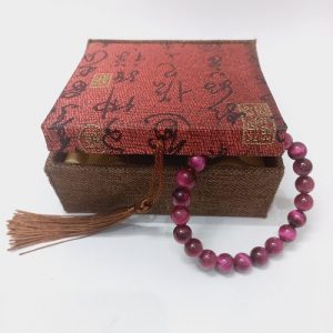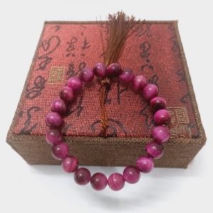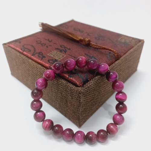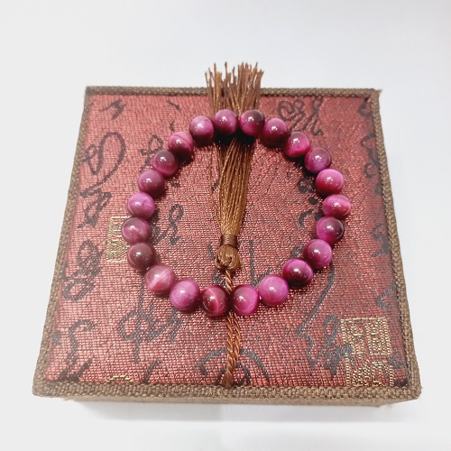 Vòng tay phong thủy đá mắt hổ là một chuỗi hạt tròn, đường kính hạt 8mm. Các hạt tròn, to điều, màu hồng đậm. Nó thích hơp cho các bạn nữ mệnh Hỏa và Thổ.